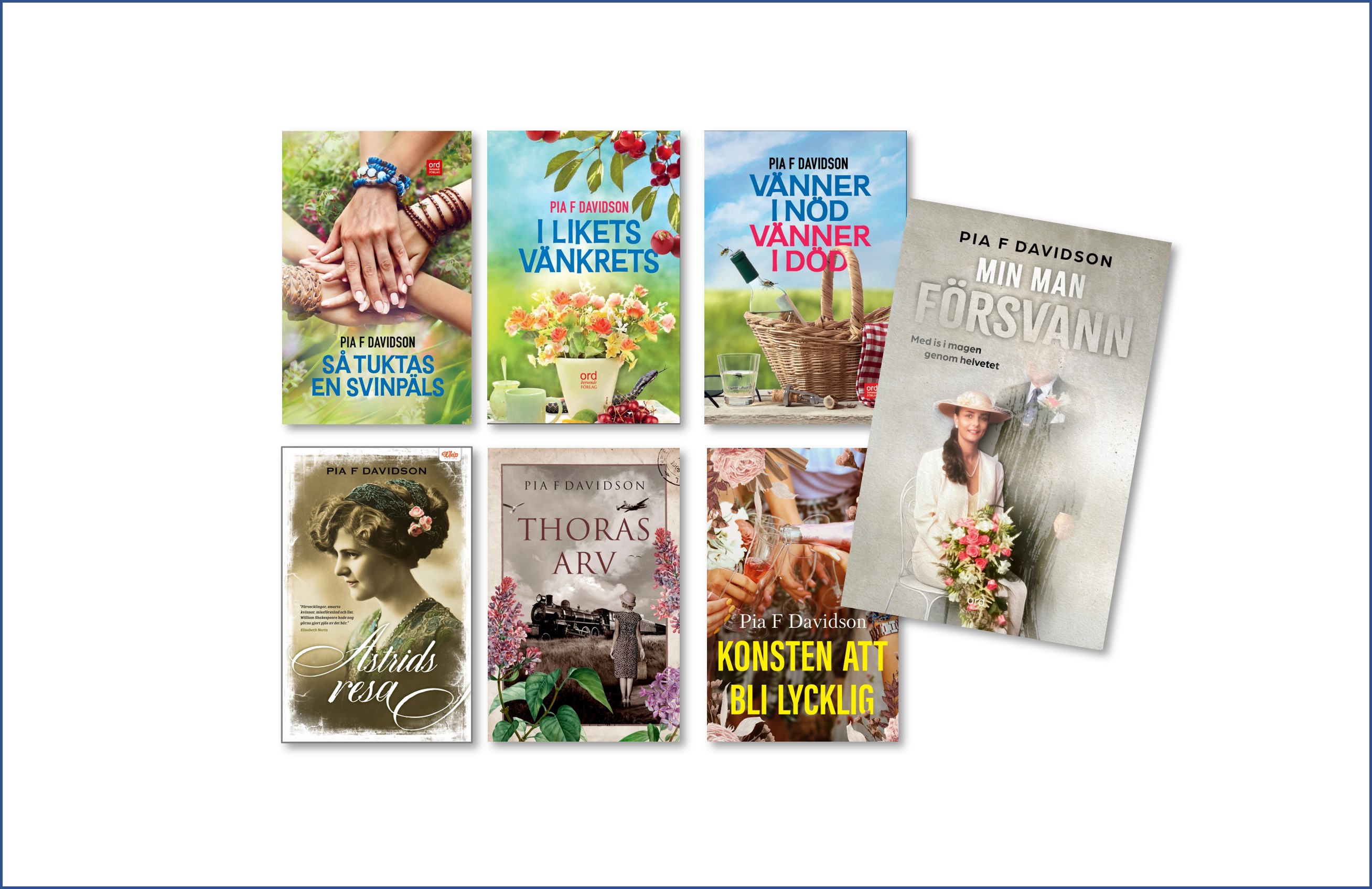 Jag heter Pia F Davidson och är författare. Förutom skrivandet gör jag författarevent, håller skrivkurser och föredrag om skrivande, samt leder ett författarnätverk vid namn Sverigeförfattarna. På den här hemsidan finns information om alla mina projekt. Under fliken Citat samlas citat reflektioner, tänkvärda ord och konkreta råd om skrivande och livets frågor. Här kommer du till näthandeln där du kan beställa mina böcker. Om du vill ha ett signerat ex går det bra här. Och här kommer du till Sverigeförfattarna!
